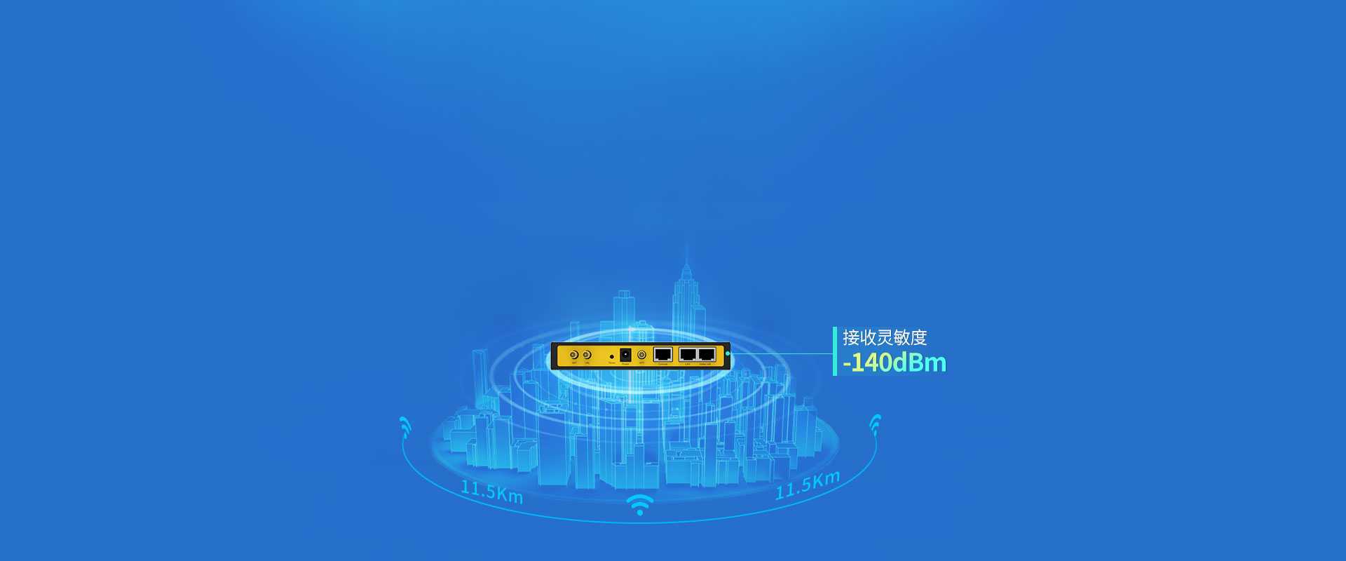 接收灵敏度达到惊人的-140dBm,理想状态下可实现>11.5Km远距离通信,